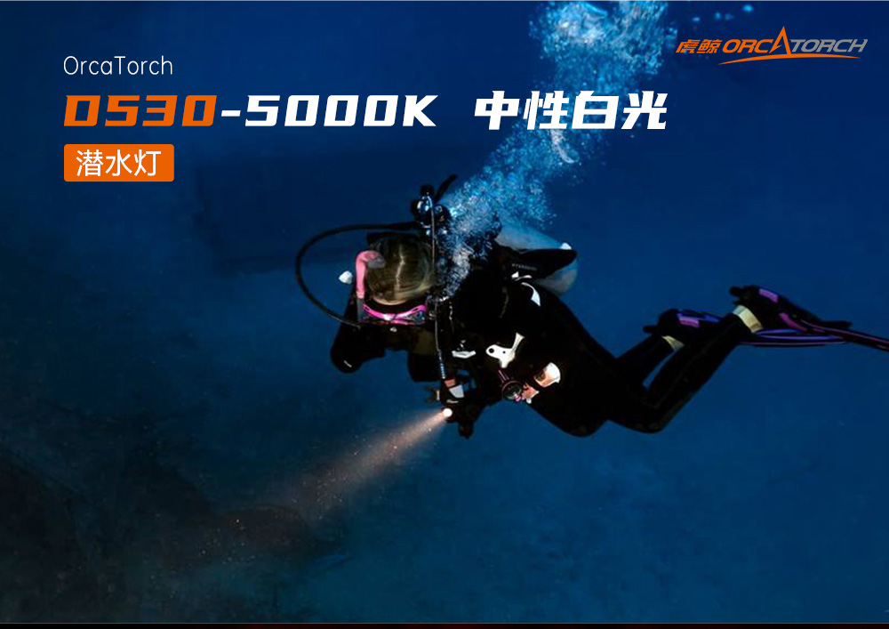 • D530暖光5000K 潛水手電筒(tǒng),休閑潛水照明,休閑潛水手電筒,休閑潛水補(bǔ)光燈,草莓视频官网OrcaTorch