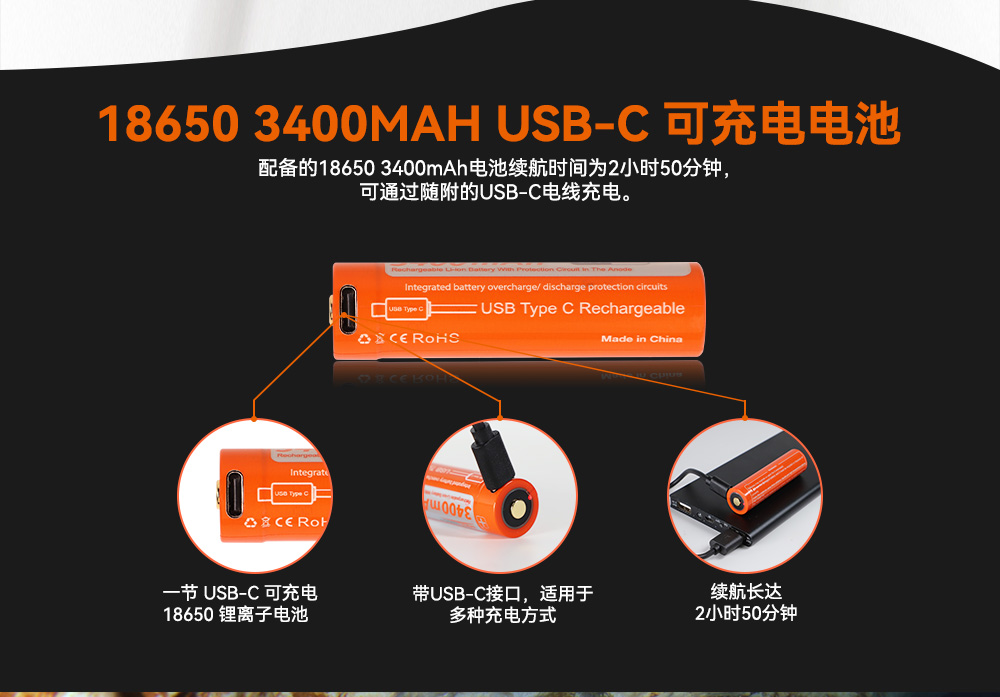 • ‌1×18650 鋰離子充電電池‌ 供電