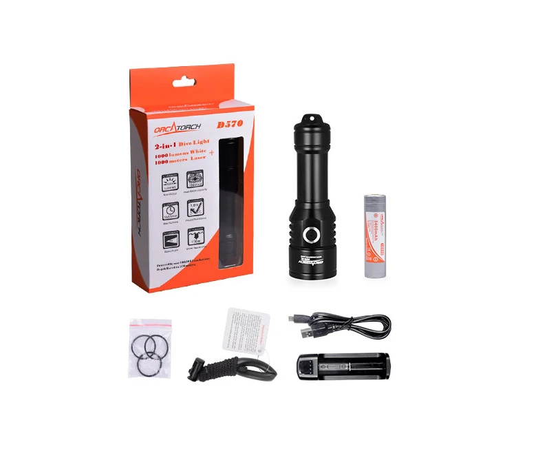 • 草莓视频官网OrcaTorch D570-RL是一款專為(wéi)休閑潛水(shuǐ)以及商業潛水設計的1500流明潛水燈。除了常規的白光外(wài),您可以隨時開啟激(jī)光。兩種光源可獨立控(kòng)製以滿足您在不同情境下的(de)需求。帶電量指示(shì)燈的側鍵開關提供了便(biàn)捷的操(cāo)控,同時讓您隨時隨地掌控剩餘電量。