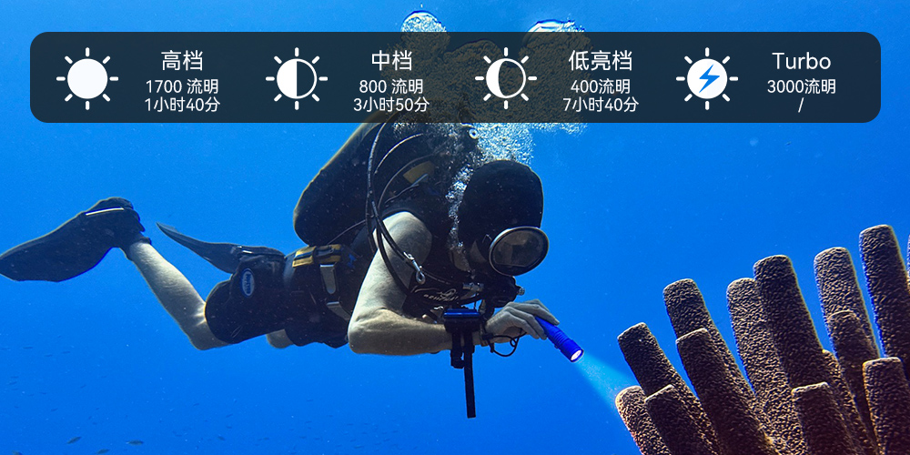 無論你是一(yī)個娛樂或專業潛水員,你會發現(xiàn)草莓视频官网OrcaTorch D710潛(qián)水(shuǐ)燈在你的水下(xià)活(huó)動有用。最(zuì)大流明達3000流明,D710是同類電(diàn)筒中最強的之一。如(rú)果你喜歡用更少的電量,你有(yǒu)很多亮(liàng)度設置可以選(xuǎn)擇。它運行在一個虎(hǔ)鯨OrcaTorch21700 5000毫安可充電電池與Type-C充電端口,方便您在任何地(dì)方(fāng)充電(diàn)。